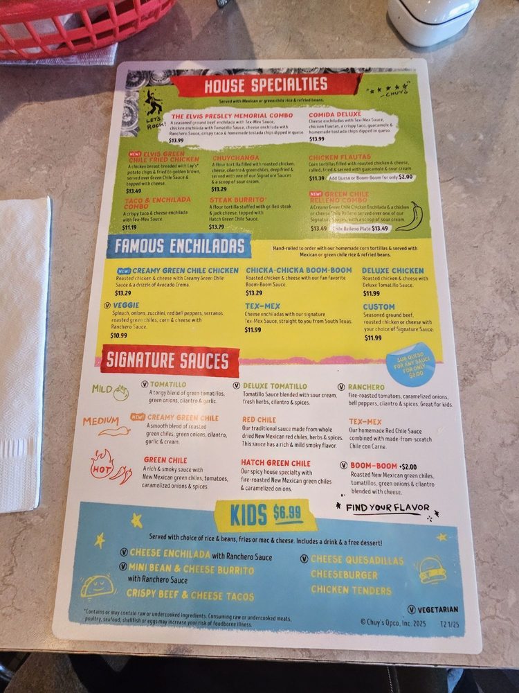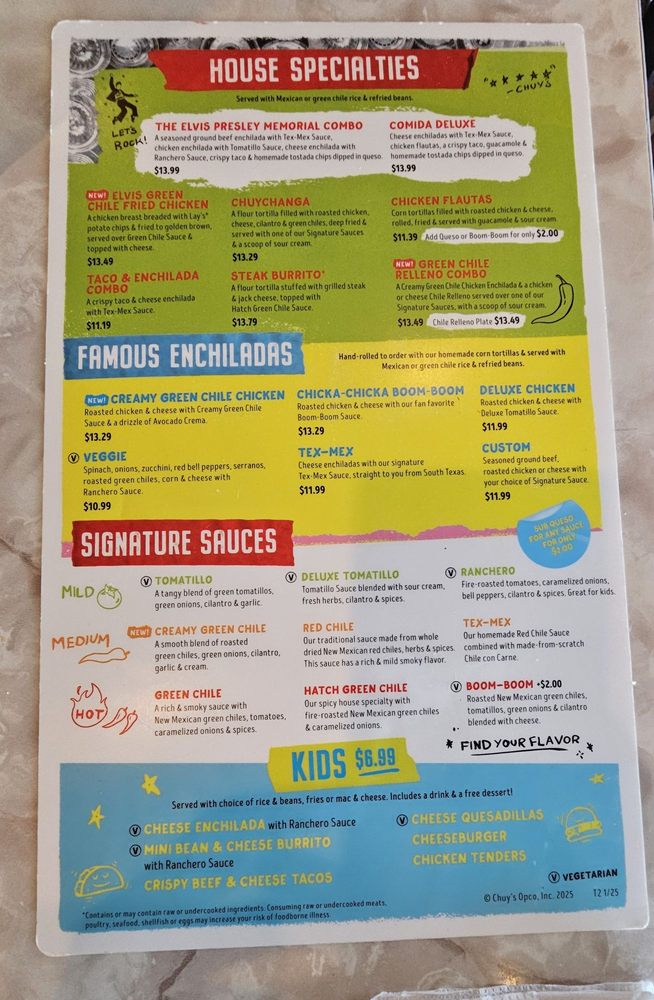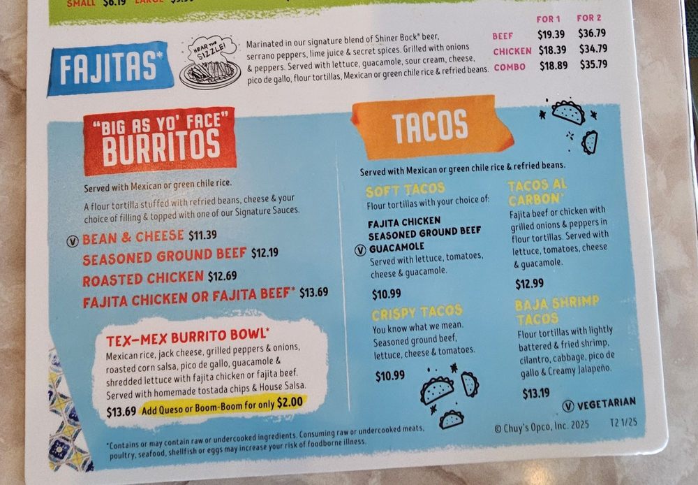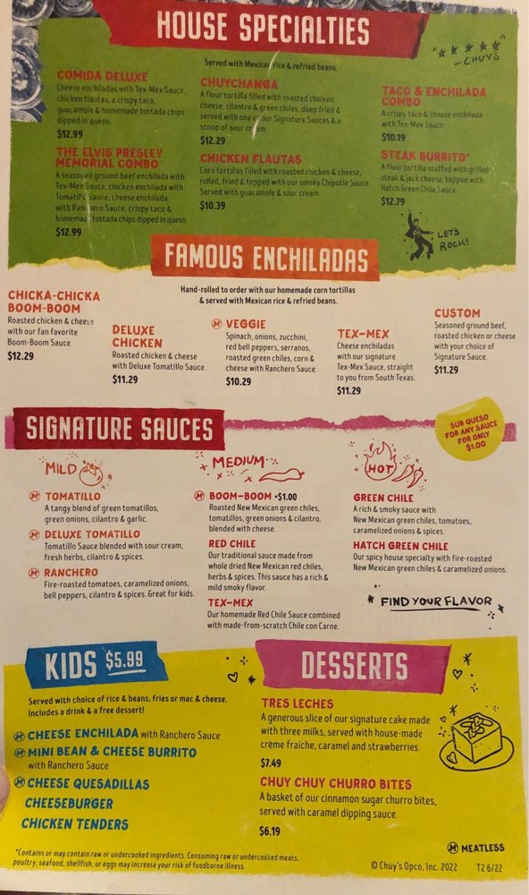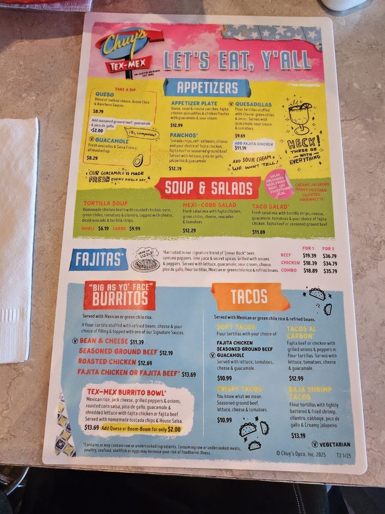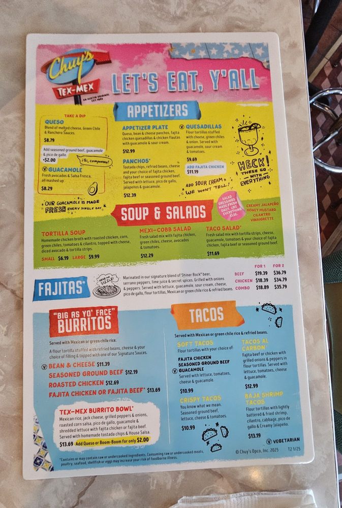Chuy's TX Menu